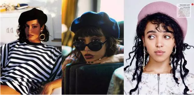 當(dāng)然,在二十世紀(jì)的歐洲,貝雷帽慢慢開始被女性所佩戴,因為不同材質(zhì)不同顏色的區(qū)分,慢慢開始形成風(fēng)格,開始復(fù)古優(yōu)雅起來。